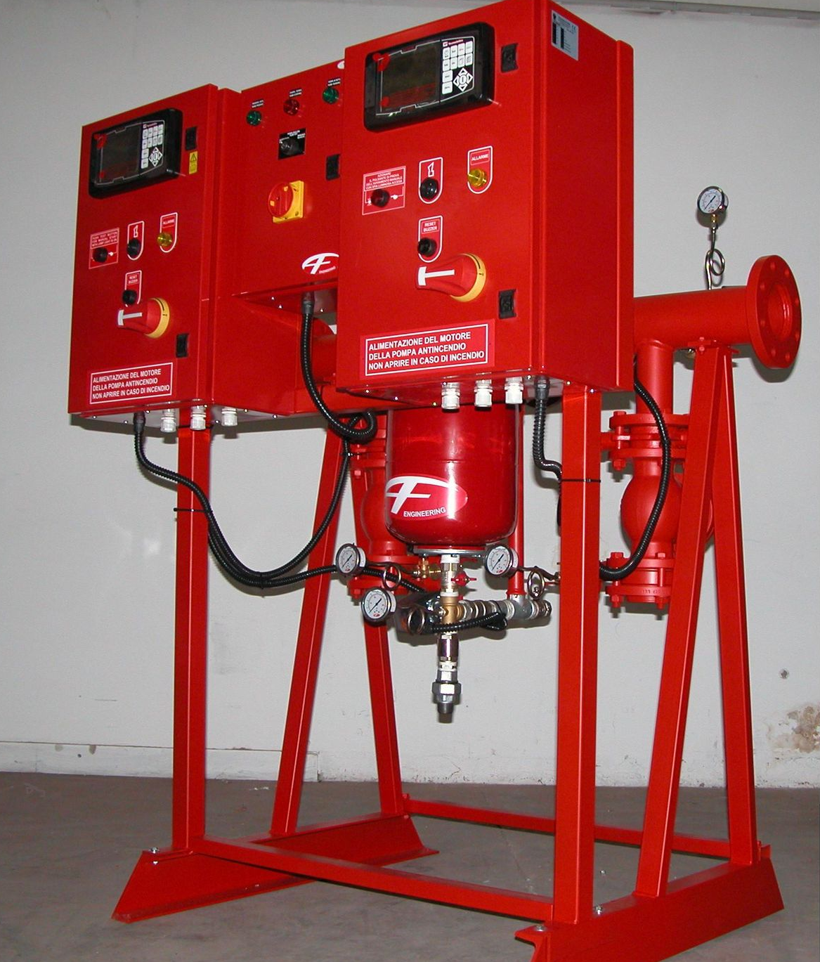 Le pompe principali sono gestite tramite quadri di comando e controllo A.F. Engineering dotati di centralina TE809VVF, con possibilità di integrazione di modulo GSM o modulo LAN per funzioni avanzate di monitoraggio e comunicazione.